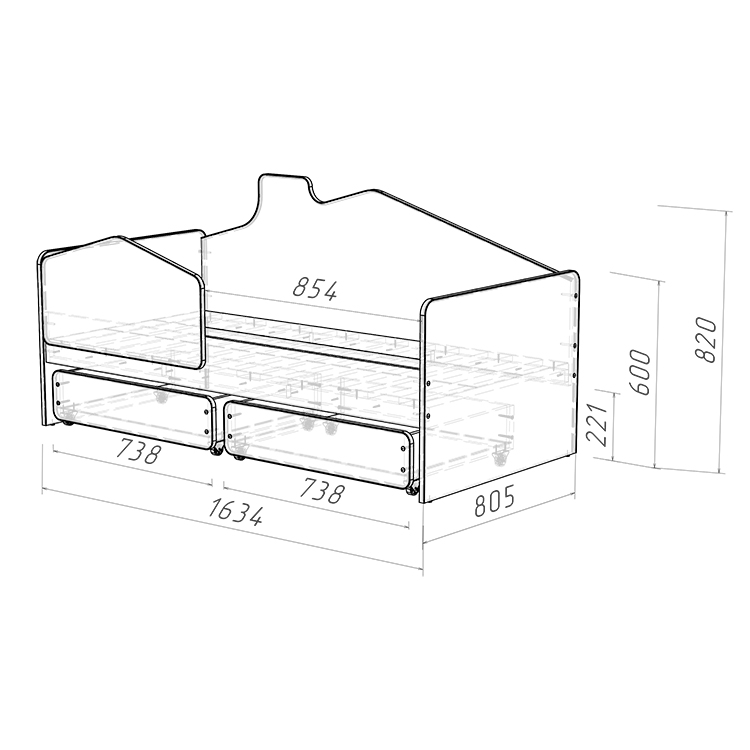 Длина/Ширина/Высота (мм) 1634 × 805 × 820